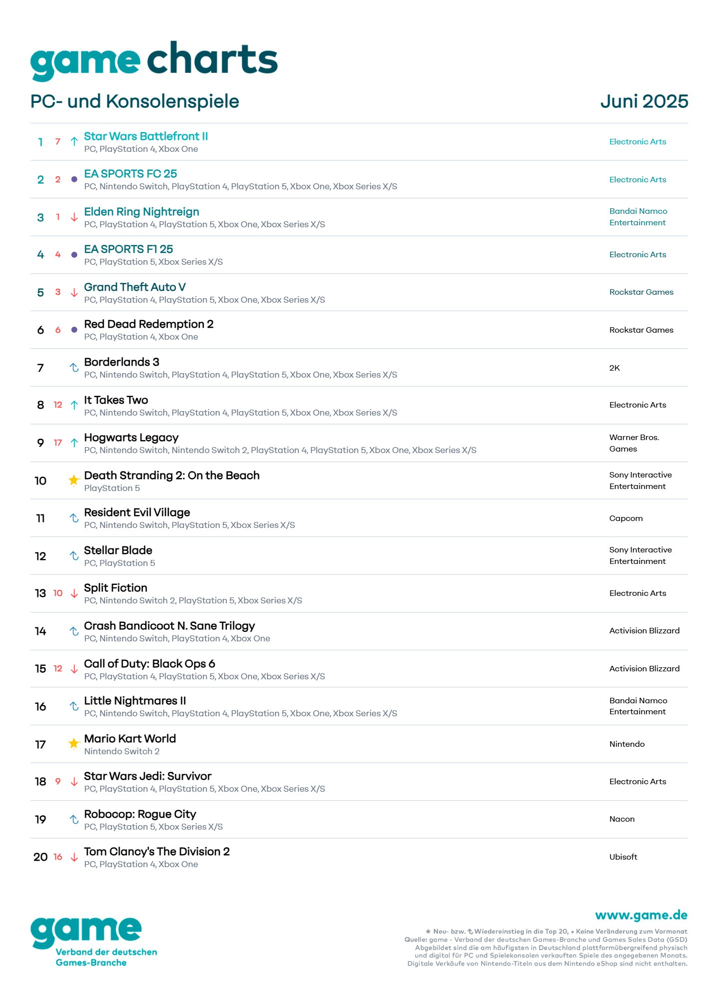 Top 20 Videospiele Charts Deutschland Juni 2025 Screenshots Bilder